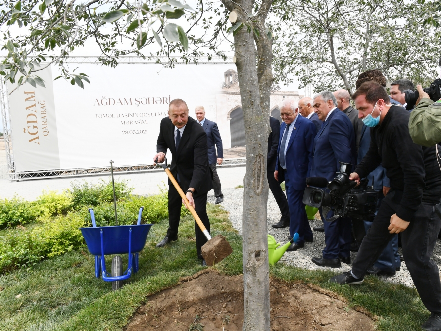 Azərbaycan Respublikasının Prezidenti cənab İlham Əliyev 2021-ci il mayın 28-də Ağdam şəhərinin bərpasının təməl daşının qoyulması mərasimində iştirak edib, rayon ictimaiyyətinin nümayəndələri ilə görüşüb
