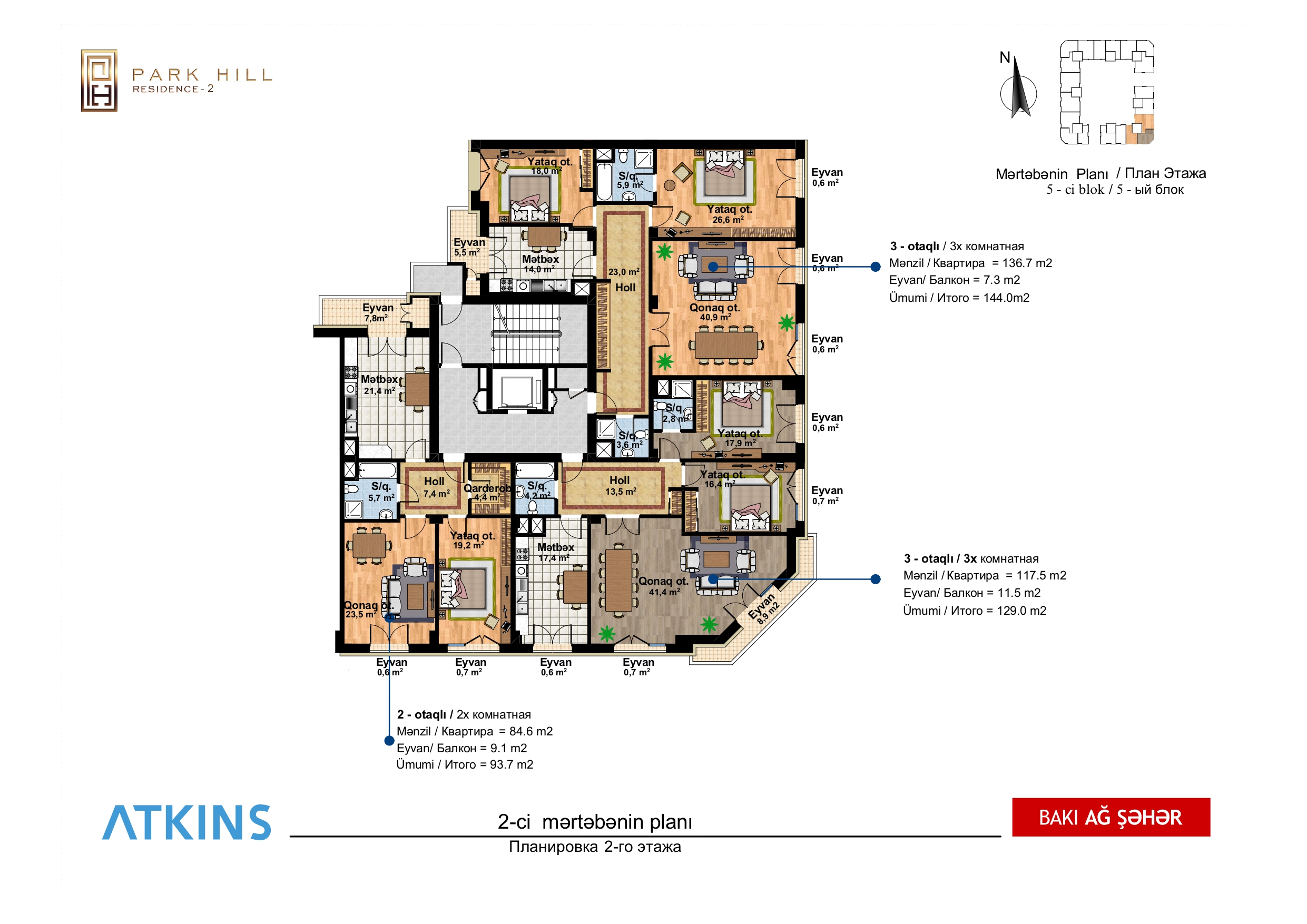 2-ci, 3-cü, 4-cü, 5-ci mərtəbələr