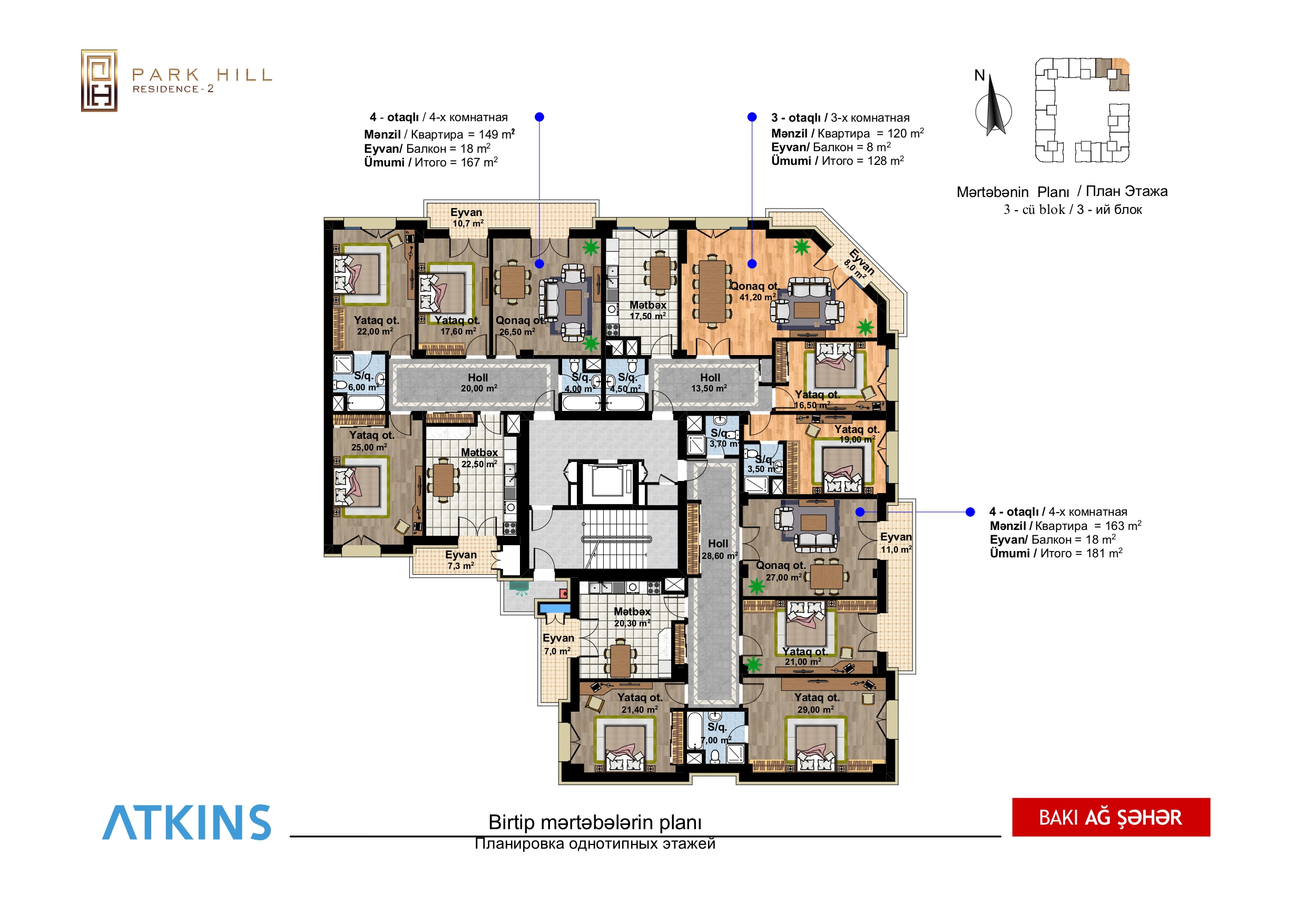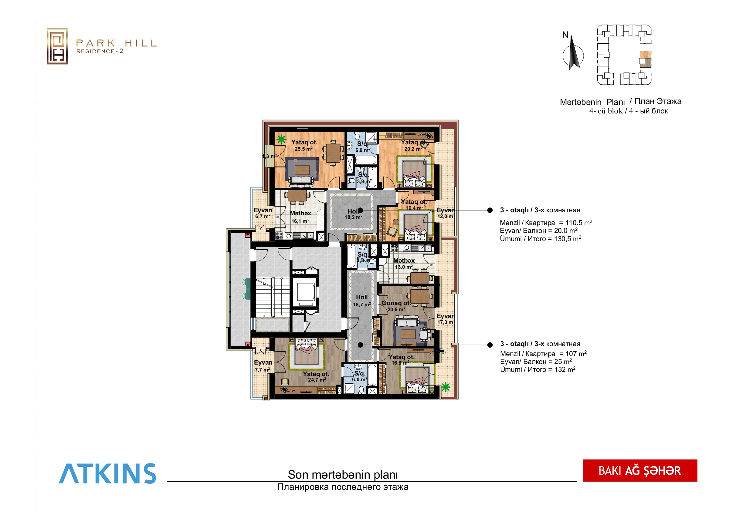 3-cü, 4-cü, 5-ci, 6-cı mərtəbələr