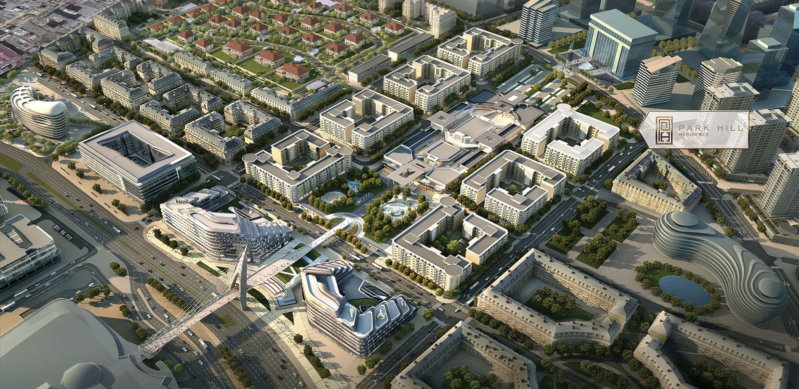 Park Hill klub evi Bakı Ağ Şəhər layihəsinin mərkəzi rayonu olan Fəvvarələr Meydanının yüksəkliyində yerləşir.
